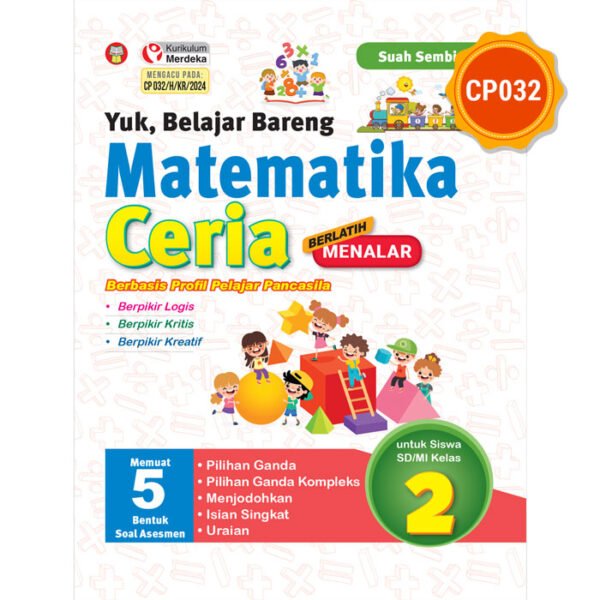 Di abad ke-21 ini siswa dihadapkan pada kemajuan teknologi yang begitu pesat sehingga pola pendidikan juga perlu disesuaikan agar siswa dapat menjawab dan menyelesaikan tantangan-tantangan yang harus dihadapinya. Apa saja yang harus dimiliki oleh siswa di era pembelajaran abad 21? Di era pembelajaran abad 21 ini, dua hal penting yang harus dimiliki oleh siswa yaitu berkarakter baik dan mempunyai keterampilan berpikir abad 21. Karakter baik yang harus dimiliki oleh siswa yaitu beriman, bertakwa kepada Tuhan YME, dan berakhlak mulia; berkebinekaan global; bergotong royong; kreatif; bernalar kritis; dan mandiri. Sedangkan keterampilan berpikir abad 21 meliputi daya cipta dan inovasi (creativity and innovation), berpikir kritis (critical thinking), pemecahan masalah (problem solving), pengambilan keputusan (decision making), serta cara belajar dan metakognisi (learning to learn and metacognition). Buku “Yuk, Belajar Bareng Matematika Ceria untuk Siswa SD/MI Kelas 2” ini disusun khusus untuk membantu siswa mempersiapkan pembelajaran abad 21. Pada buku ini siswa tidak langsung didogma untuk menghafalkan rumus-rumus. Siswa dituntun untuk mendapatkan rumus secara mandiri berdasarkan definisi yang diberikan. Di samping itu, di dalam buku ini juga sudah disajikan tipe-tipe asesmen dalam 5 bentuk, meliputi pilihan ganda, pilihan ganda kompleks, menjodohkan, isian singkat, dan uraian. Susunan bentuk asesmen dibuat sedemikian rupa sehingga disesuaikan dengan tingkat kesulitannya, diawali dari yang mudah ke yang memerlukan pemikiran lebih mendalam (menalar). Rubrik-rubrik yang disajikan dalam buku ini pun mengajak siswa untuk belajar dengan gembira sesuai dengan judul bukunya “Yuk, Belajar Bareng Matematika Ceria”. Hadirnya buku ini bertujuan untuk mengubah paradigma berpikir bahwa matematika merupakan pelajaran yang sulit menjadi pelajaran yang mudah dan menyenangkan untuk dipelajari. Soal-soal yang disajikan di dalam buku ini dapat digunakan oleh siswa belajar mandiri di rumah sebagai persiapan untuk menghadapi berbagai jenis ujian. Di samping itu, buku ini bisa menjadi referensi bagi orang tua/wali untuk mengajarkan putra/putrinya di rumah dan referensi bagi guru untuk melihat bentuk-bentuk asesmen yang bisa digunakan untuk membuat soal Asesmen Formatif dan Asesmen Sumatif.
